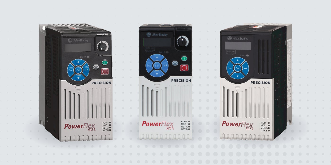 El Variador de frecuencia PowerFlex 523 de Allen Bradley es una solución confiable y eficiente para el control de velocidad en aplicaciones industriales. Este variador compacto es ideal para sistemas que requieren una mayor fiabilidad y rendimiento, con la capacidad de adaptarse a una amplia gama de aplicaciones industriales de bajo a mediano alcance.